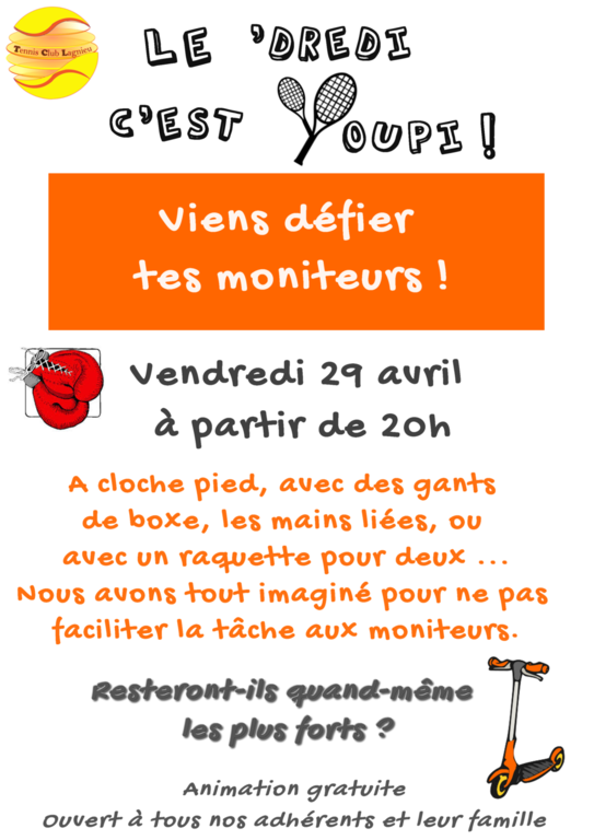 Enfants, jeunes, adultes, nous vous attendons nombreux pour venir défier vos moniteurs !