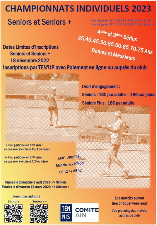 Les inscriptions aux championnats individuels de l’Ain Seniors et Seniors+ se terminent très bientôt,